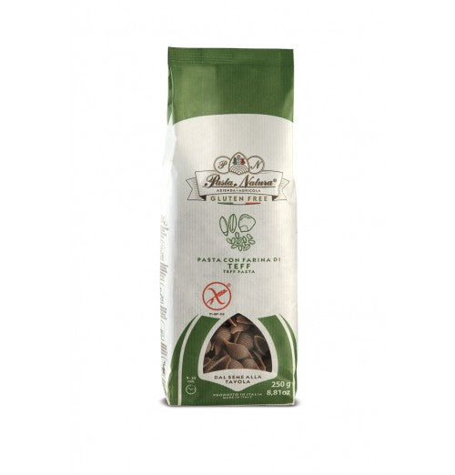 PASTA NATURA teff flour pasta is naturally gluten-free. Created to meet the needs of people suffering from celiac disease, it proved to be a welcome surprise for the general public. Appreciated for its rustic taste, pasta with teff flour lends itself to the creation of every first course, from the most traditional to the innovative. Slow drying at low temperatures, bronze drawing, these are the ingredients of a story of success, deliciousness and health. Teff flour is rich in fiber so it is easily digestible, has antioxidant properties and is a source of cholesterol-free vegetable proteins.